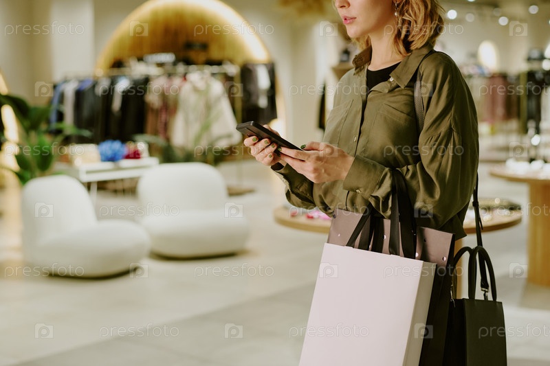 Женщина, отправляющая текстовые сообщения во время пребывания в бутике