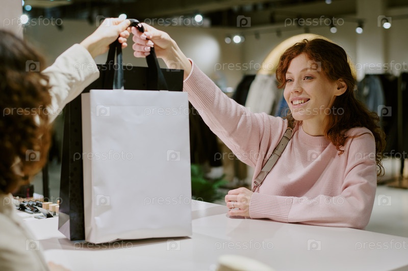 Очаровательный клиент, берущий сумки