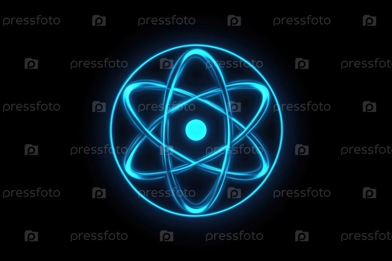 Светящийся атомный символ с циркулирующими синими электронами