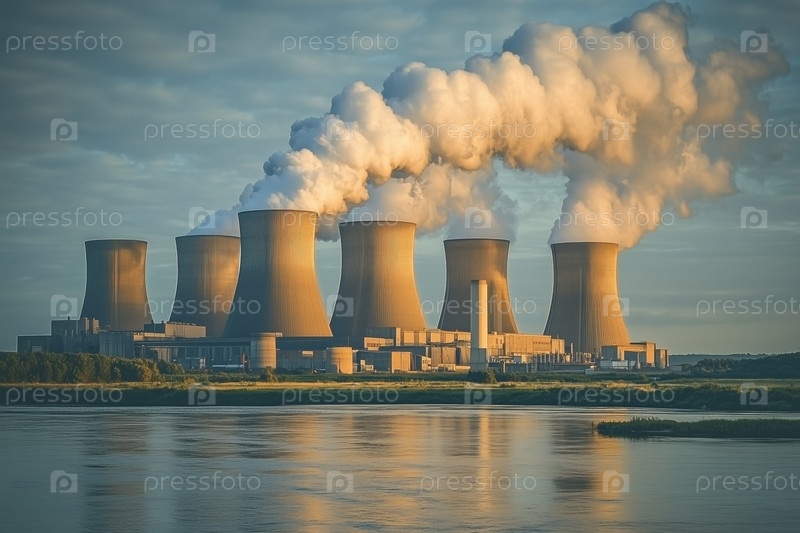 Охладительные башни, излучающие пар на промышленных заводах