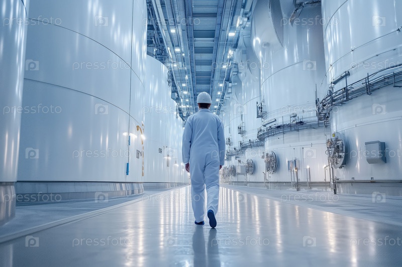 Инженер прогулка через промышленное сооружение интерьера