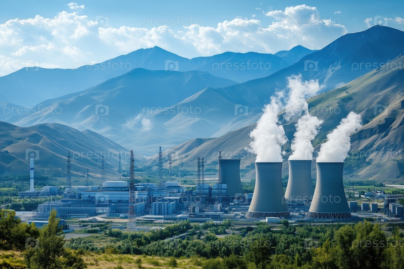 Прекрасный вид на электростанцию посреди величественных гор