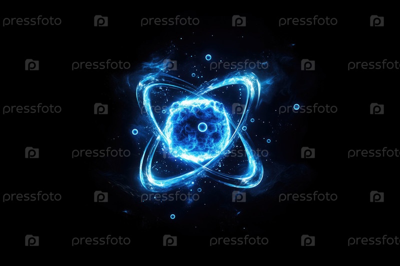 Светящаяся синяя атомная структура с вращающимися частицами