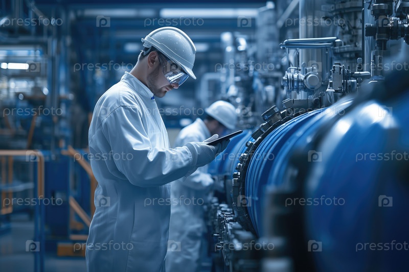 Инженер, использующий цифровые планшеты на промышленных объектах