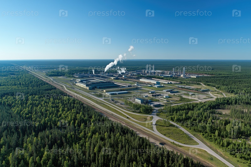 Вид с воздуха промышленного завода в пышном зеленом ландшафте