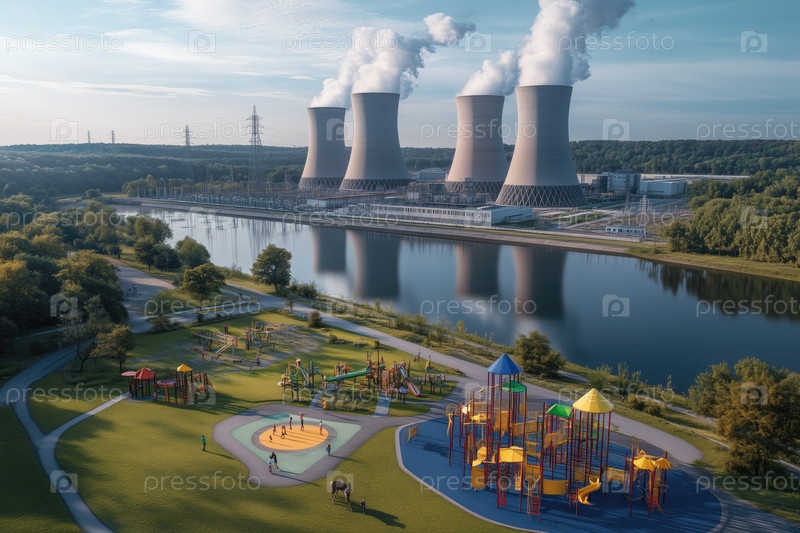 Башни электростанции отражаются на реке Калм возле района парка