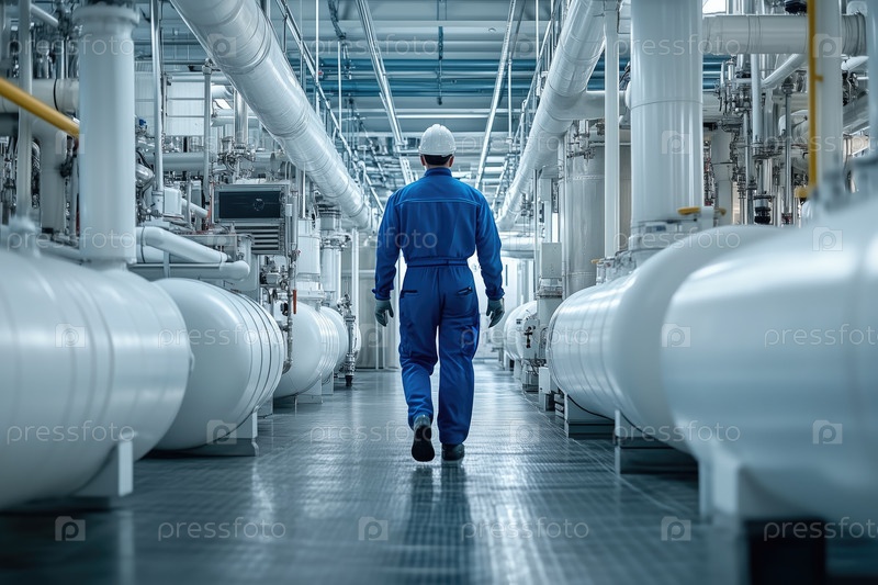 Инженер, прогуливающийся по промышленному объекту Проверка оборудования