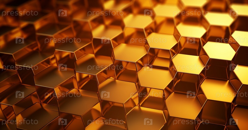 Золотая шестиугольная ячейковая плитка на роскошном декоре интерьера Золотые металлические соты