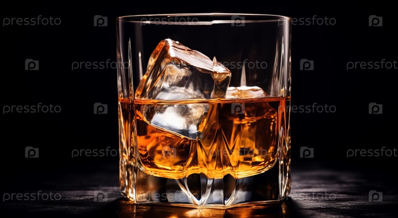 Виски со льдом в стакане, на темном фоне