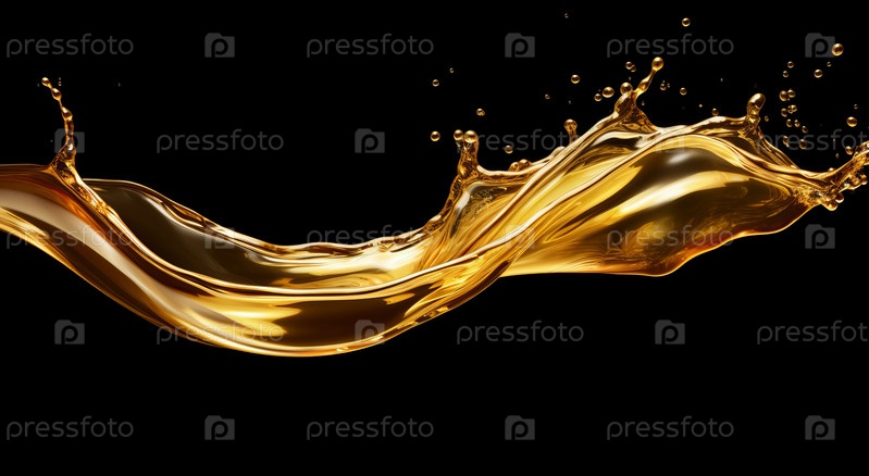Крупный план, запечатлевший момент всплеска золотистого масла, создающий визуально поразительное зрелище