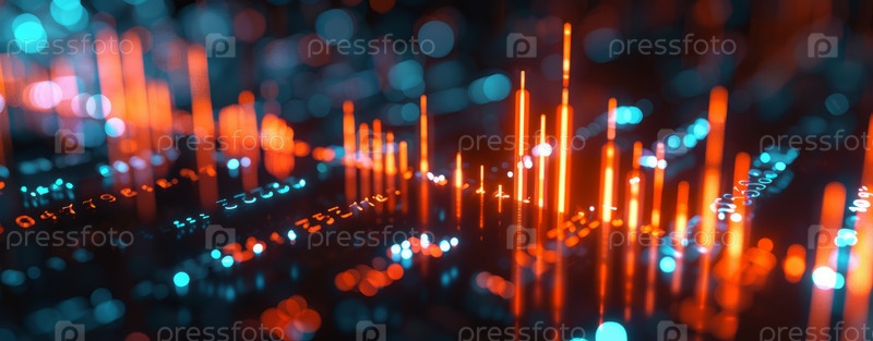 Абстрактный технологический ландшафт с элементами дополненной реальности, виртуальной реальности и искусственного интеллекта для инновационных цифровых концепций