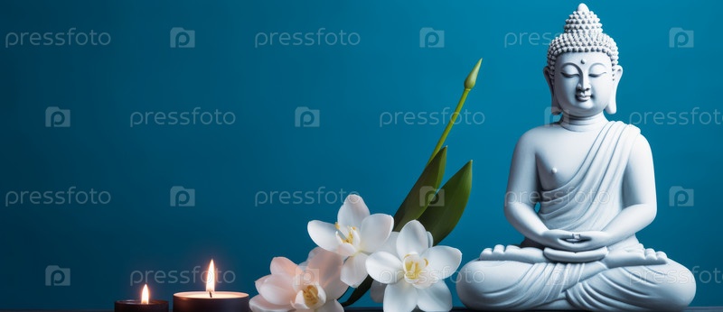 Медитация статуи Будды на синем фоне