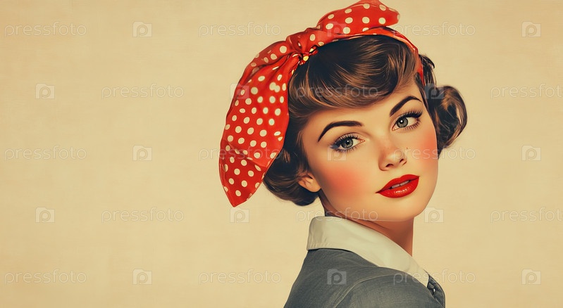 Винтажная иллюстрация женщины с красным платком в горошек