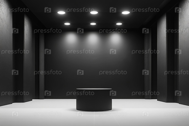 Одинокий черный куб в минимально освещенной галерее создает таинственную атмосферу