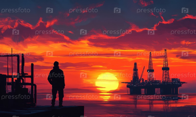 Величественная морская нефтяная вышка на закате: взгляд на индустриальную красоту