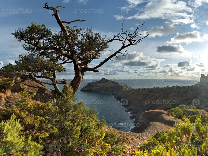 Россия, Республика Крым. Вид с труднодоступной туристической тропы на берег Черного моря недалеко от города Судак