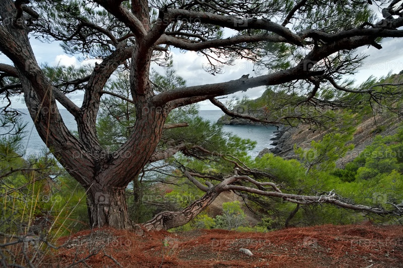 Россия, Республика Крым. Вид с труднодоступной туристической тропы на берег Черного моря недалеко от города Судак