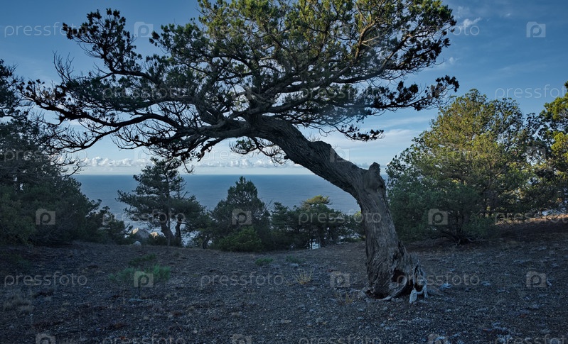 Россия, Республика Крым. Вид с труднодоступной туристической тропы на берег Черного моря недалеко от города Судак