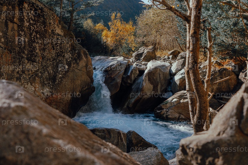 Каскадный водопад в горной реке