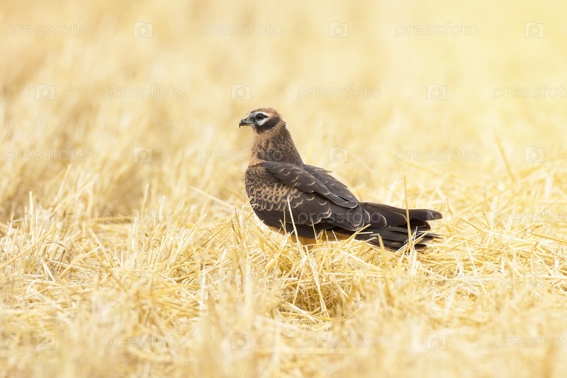 Цирковой пигаргус на пшеничном поле.Луговой лунь,самка