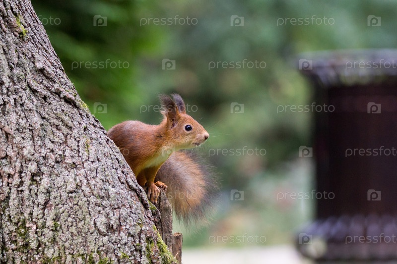 Красный сокол на ветке летом, Скивр, парк, Тамиасцирус