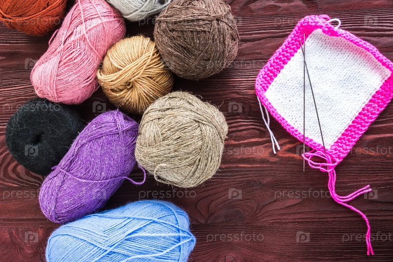 Вязальный клубок пряжи и спицы