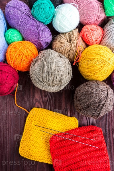 Вязальный клубок пряжи и спицы