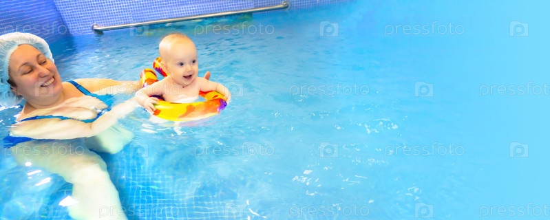 Очаровательная малышка наслаждается плаванием в бассейне со своей мамой. Занятия по раннему развитию для младенцев, обучение детей плаванию и нырянию
