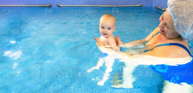 Очаровательная малышка наслаждается плаванием в бассейне со своей мамой. Занятия по раннему развитию для младенцев, обучение детей плаванию и нырянию