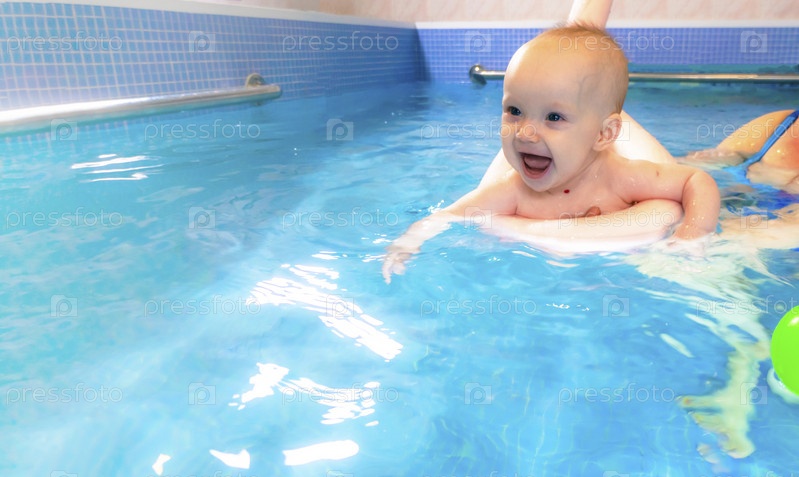 Очаровательная малышка наслаждается плаванием в бассейне со своей мамой. Занятия по раннему развитию для младенцев, обучение детей плаванию и нырянию