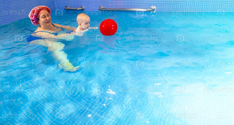 Очаровательная малышка наслаждается плаванием в бассейне со своей мамой. Занятия по раннему развитию для младенцев, обучение детей плаванию и нырянию