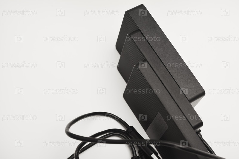 Жесткие диски на белом фоне.Современные устройства хранения данных с USB-проводами