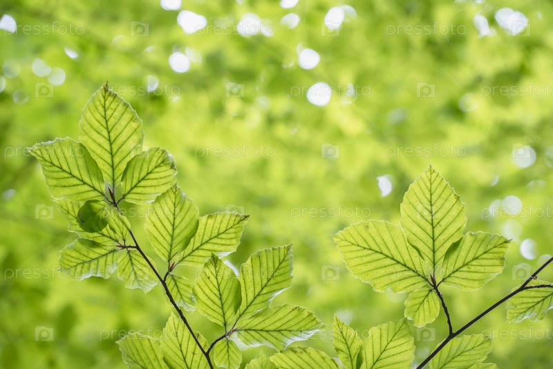 Ветви деревьев с зелеными листьями вид снизу размытый фон боке