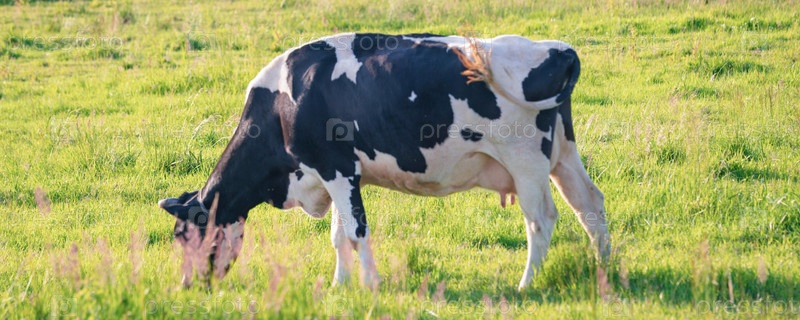 Коровы пасутся на сочном лугу в летний день