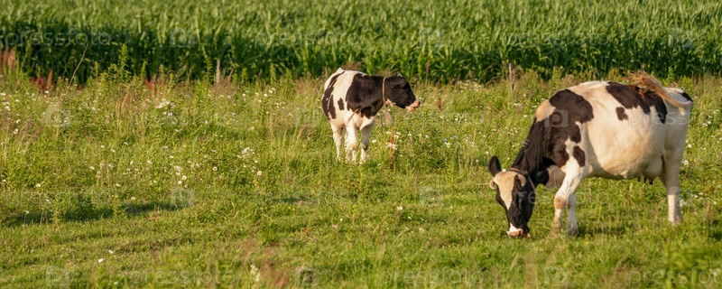 Коровы пасутся на сочном лугу в летний день