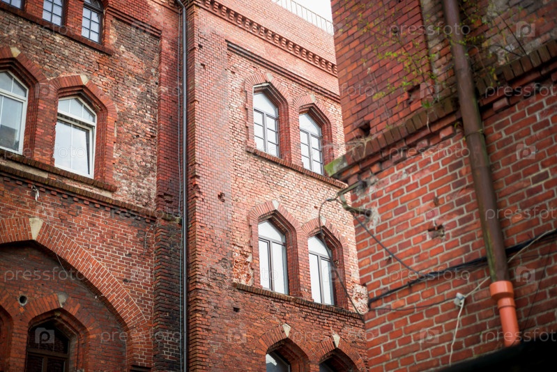 Калининград. Вид снизу на старинные кирпичные здания. 07.04.2024