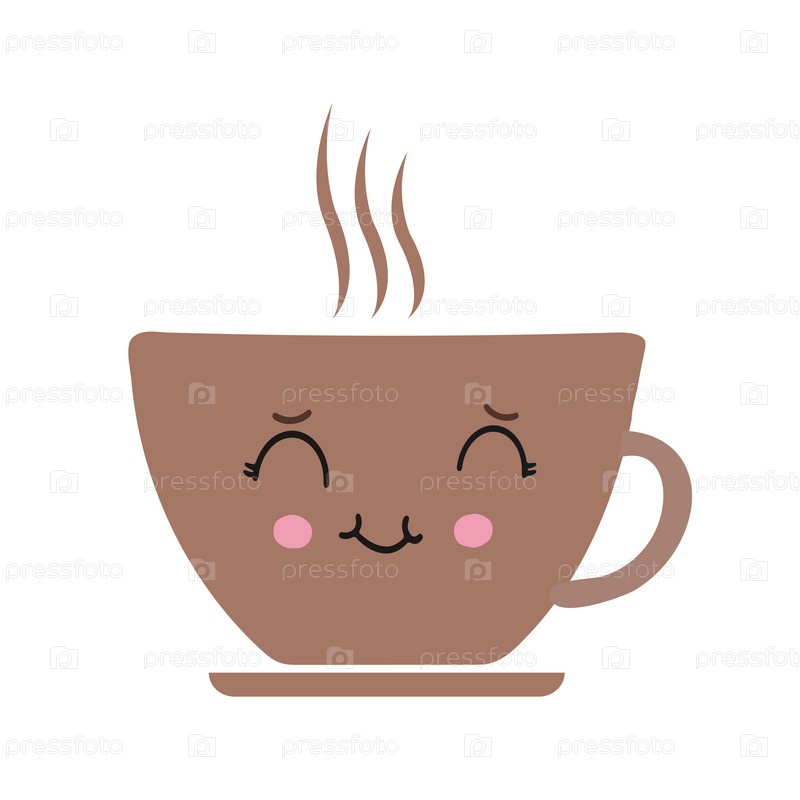 Счастливая милая улыбающаяся смешная кавайная кофейная чашка с контуром пара