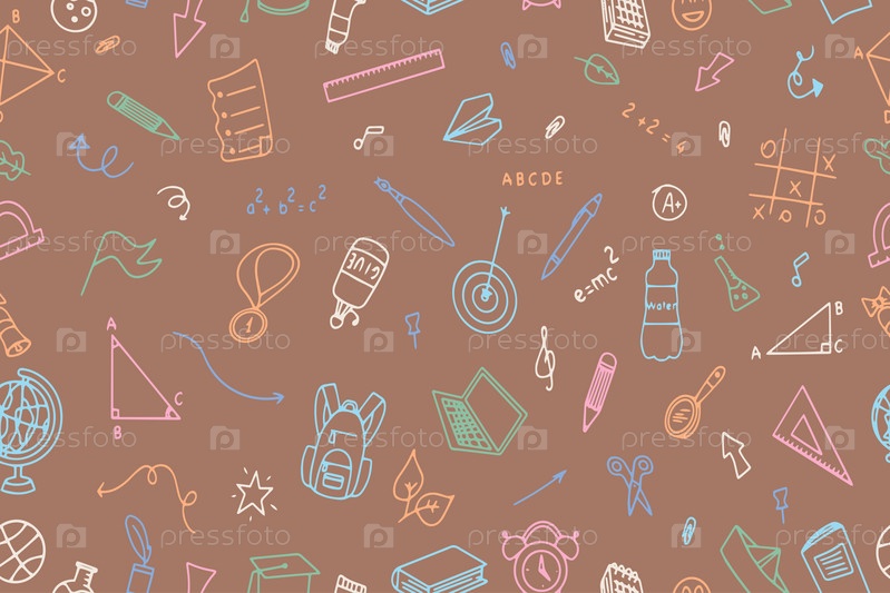 Бесшовный векторный узор «Назад в школу». Подходит для дизайна текстильной ткани, упаковочной бумаги и обоев для веб-сайтов. Векторная иллюстрация