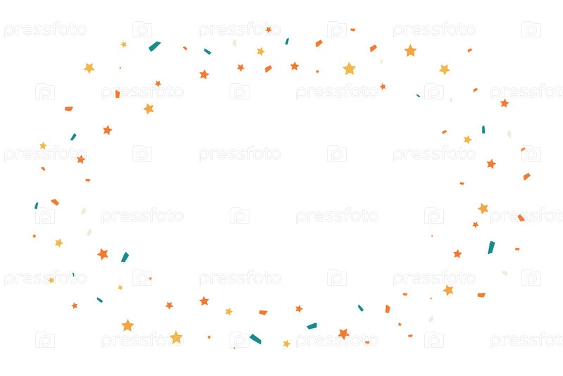 Цветные конфетти. Плакат с карнавальными частицами. Праздничный векторный белый фон