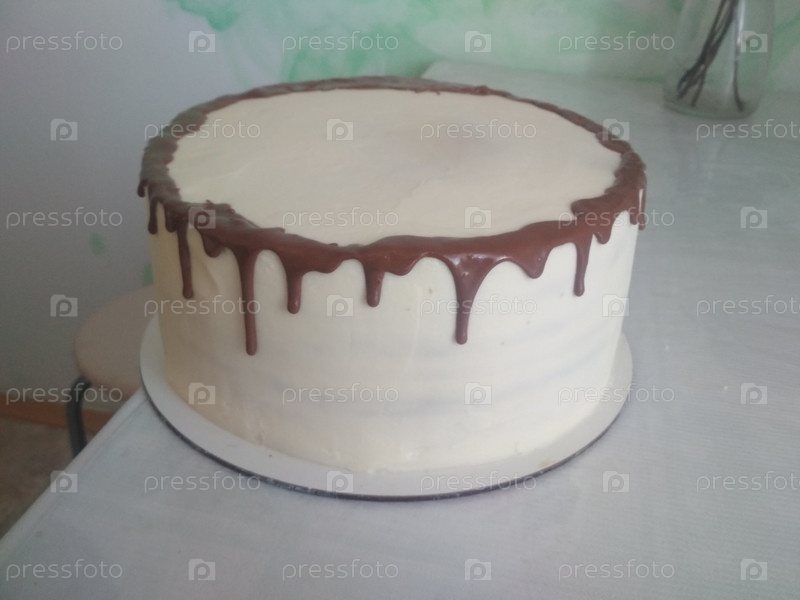 Белый бисквит с белым кремом и шоколадными потеками