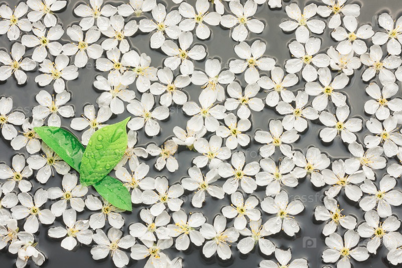 Цветы и листья вишни в воде