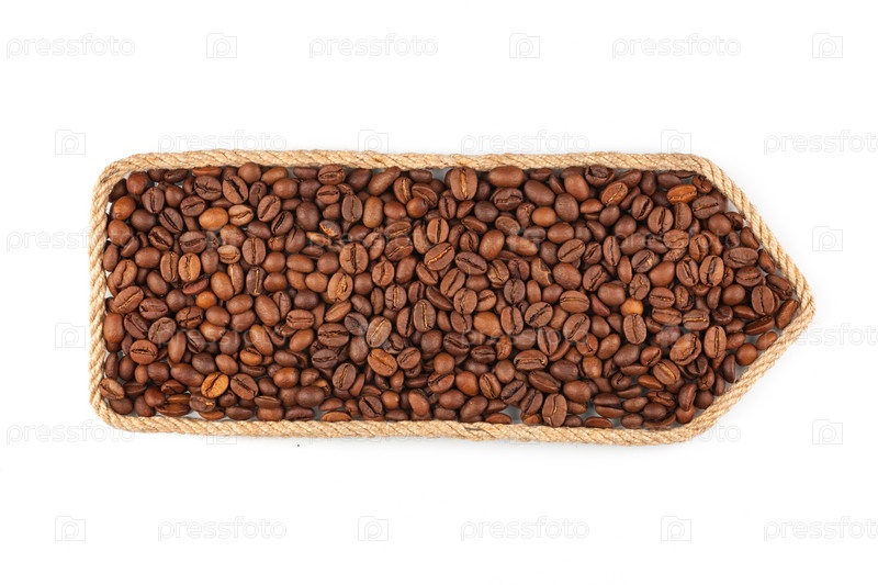 Указатель из веревки, наполненный кофейным зерном. Изолированный