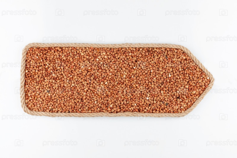 Указатель из веревки, наполненный зерном гречихи. Изолированный