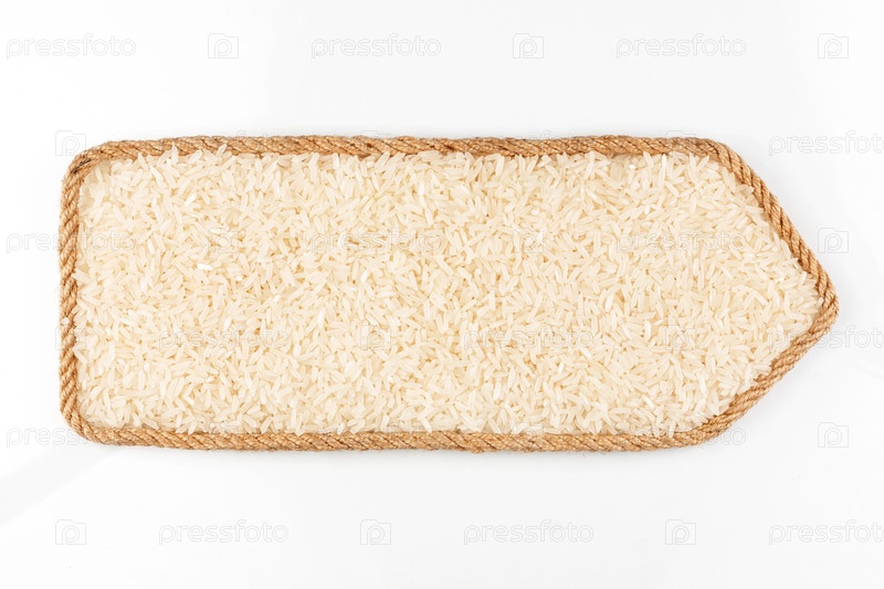 Указатель из веревки, наполненный рисовым зерном. Изолированный