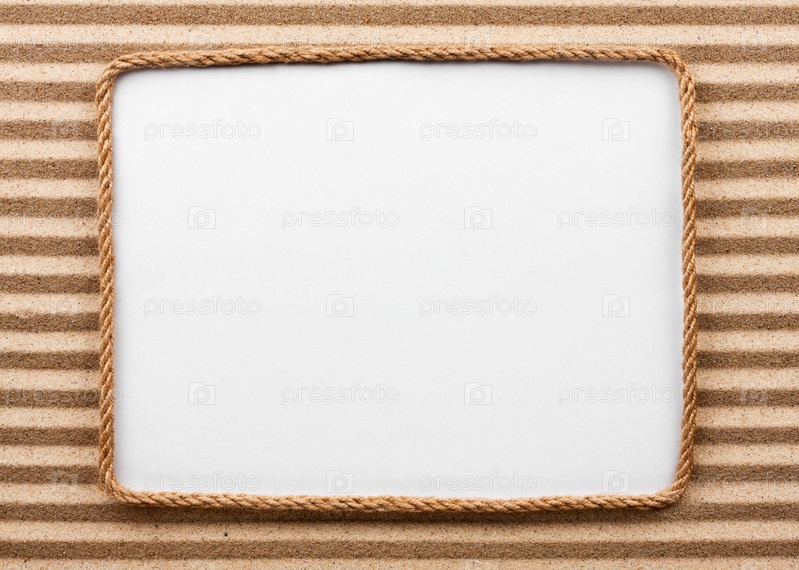 Рамка из веревки на белом фоне на песке