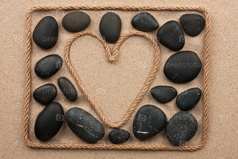 Красивая рамка из веревки в виде сердца с черными камнями