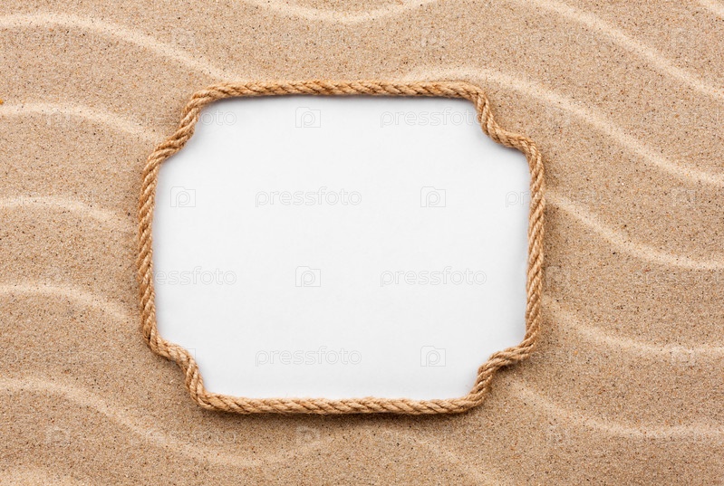 Рамка из веревки на белом фоне на песке