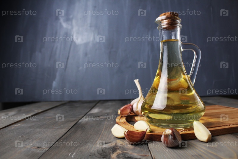Домашнее растительное масло с перцем и царапиной на сером фоне с местом для текстового кописфера