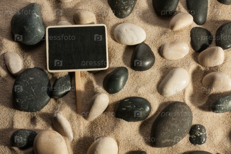 Крупный план камней и знака, торчащих из песка в солнечном свете