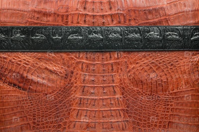 Черная полоса лежит на коричневой крокодиловой коже. Вид сверху